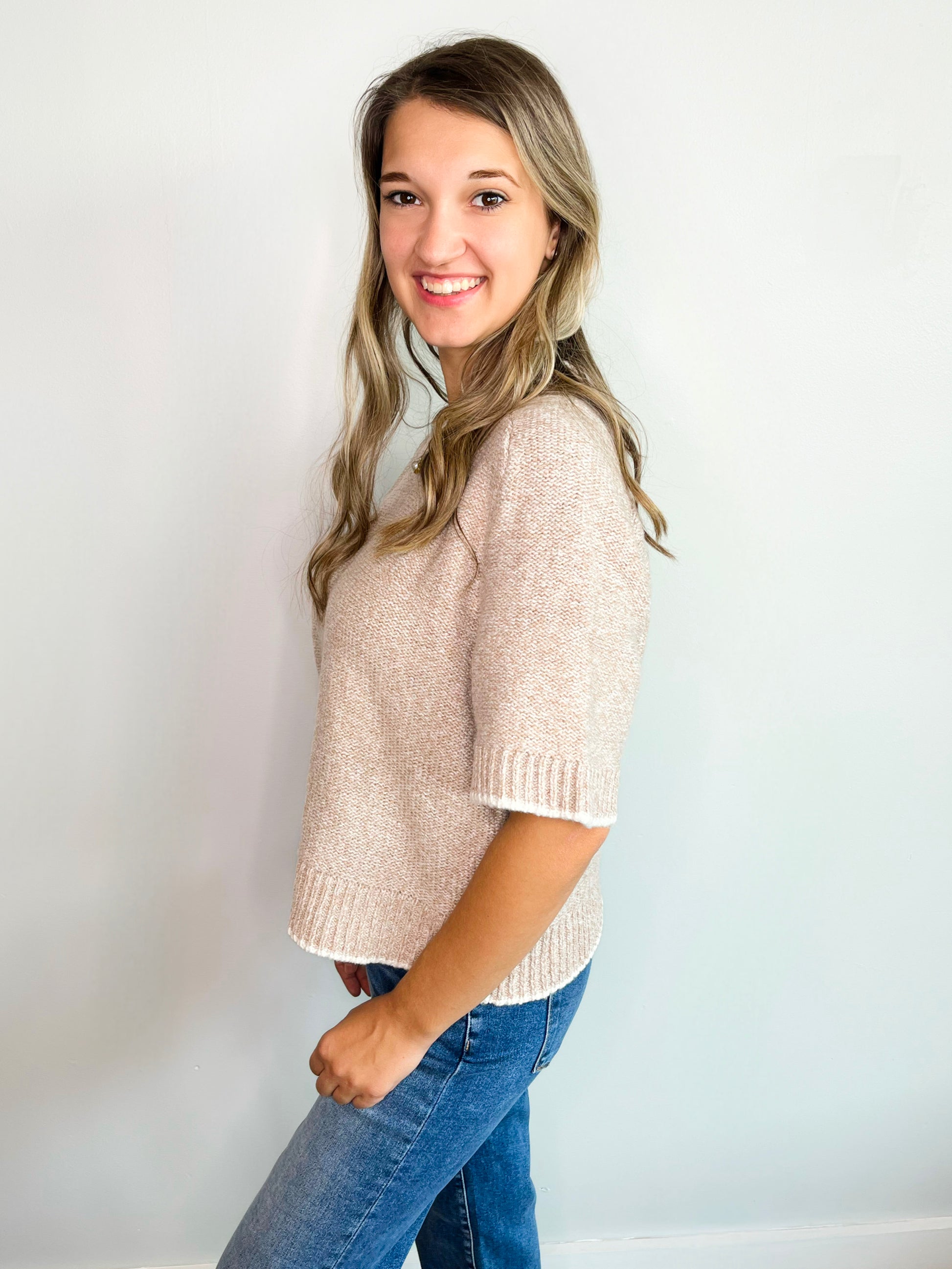 Step into fall with the Andrea Contrast Trim Short Sleeve Sweater! Featuring a cozy round neckline and playful short sleeves, it’s perfect for layering as the weather cools. The eye-catching contrast trim adds a fun twist to your seasonal wardrobe, making it easy to mix and match with your favorite jeans or skirts. Embrace the transition to cooler days with a sweater that’s as stylish as it is comfortable!