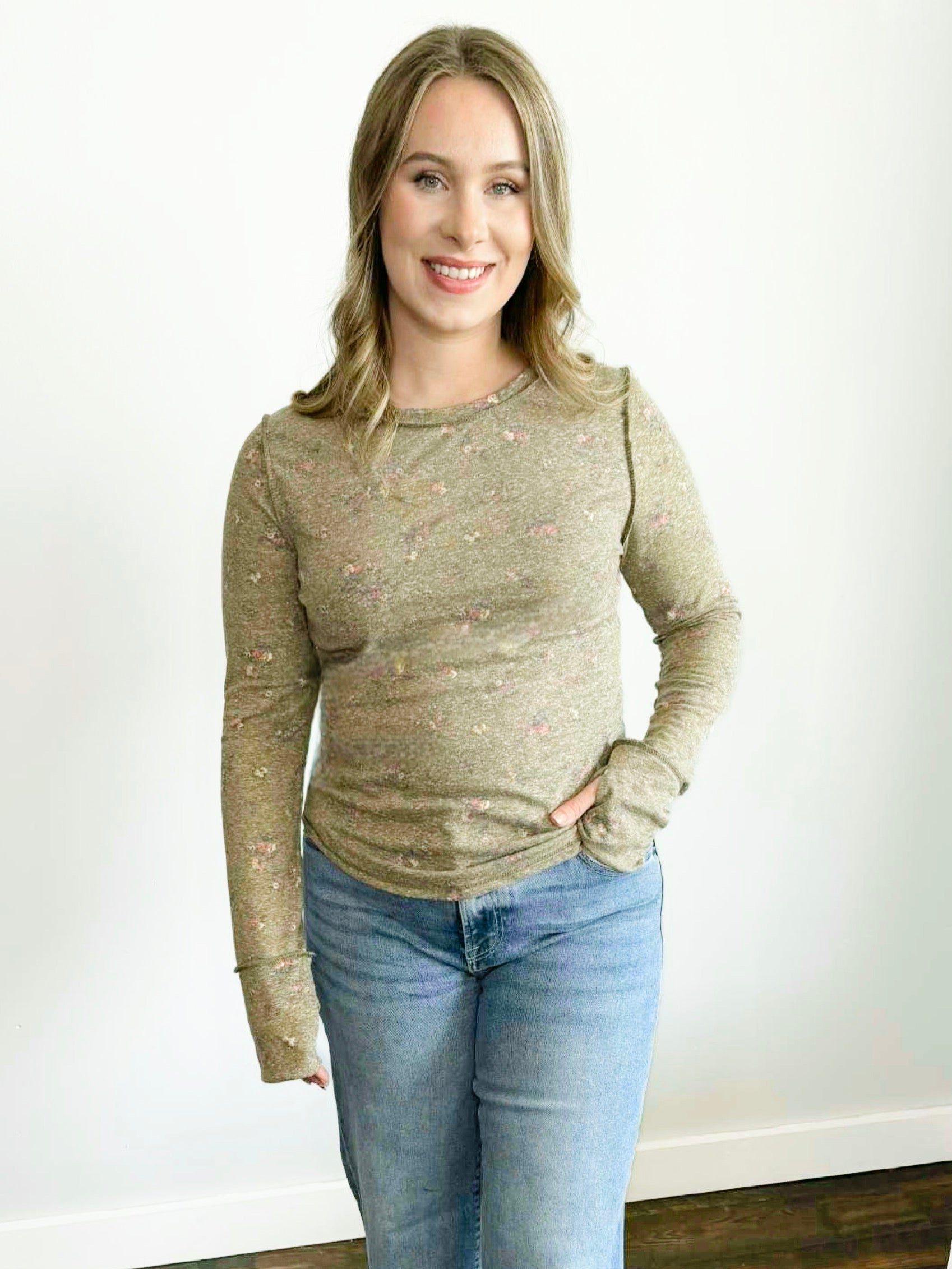 Stay cozy and chic with the Becker Floral Knit Top. This playful long-sleeve features a soft tri-blend cotton fabric, a comfy round neckline, and handy thumb holes for added warmth. The vibrant floral print brings a burst of color, making it perfect for layering or wearing solo on breezy days.