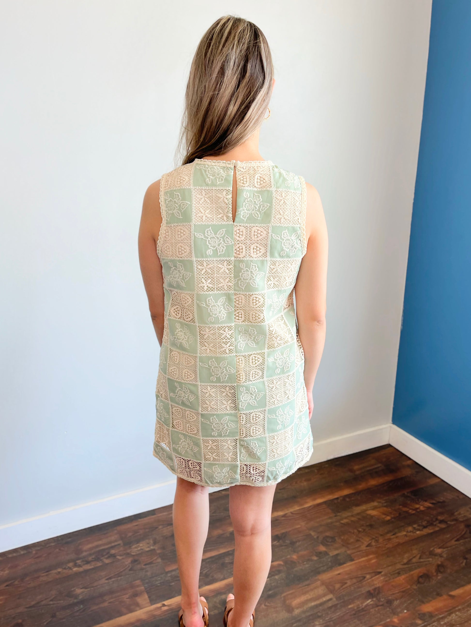 Get ready to turn heads with the Benji Crochet Shift Dress! Featuring a round neckline and sleeveless design, this dress is perfect for warmer weather. With a lined interior and unique crochet checkered fabrication, you'll be both comfortable and stylish. Add a touch of quirkiness to your wardrobe with this must-have dress!