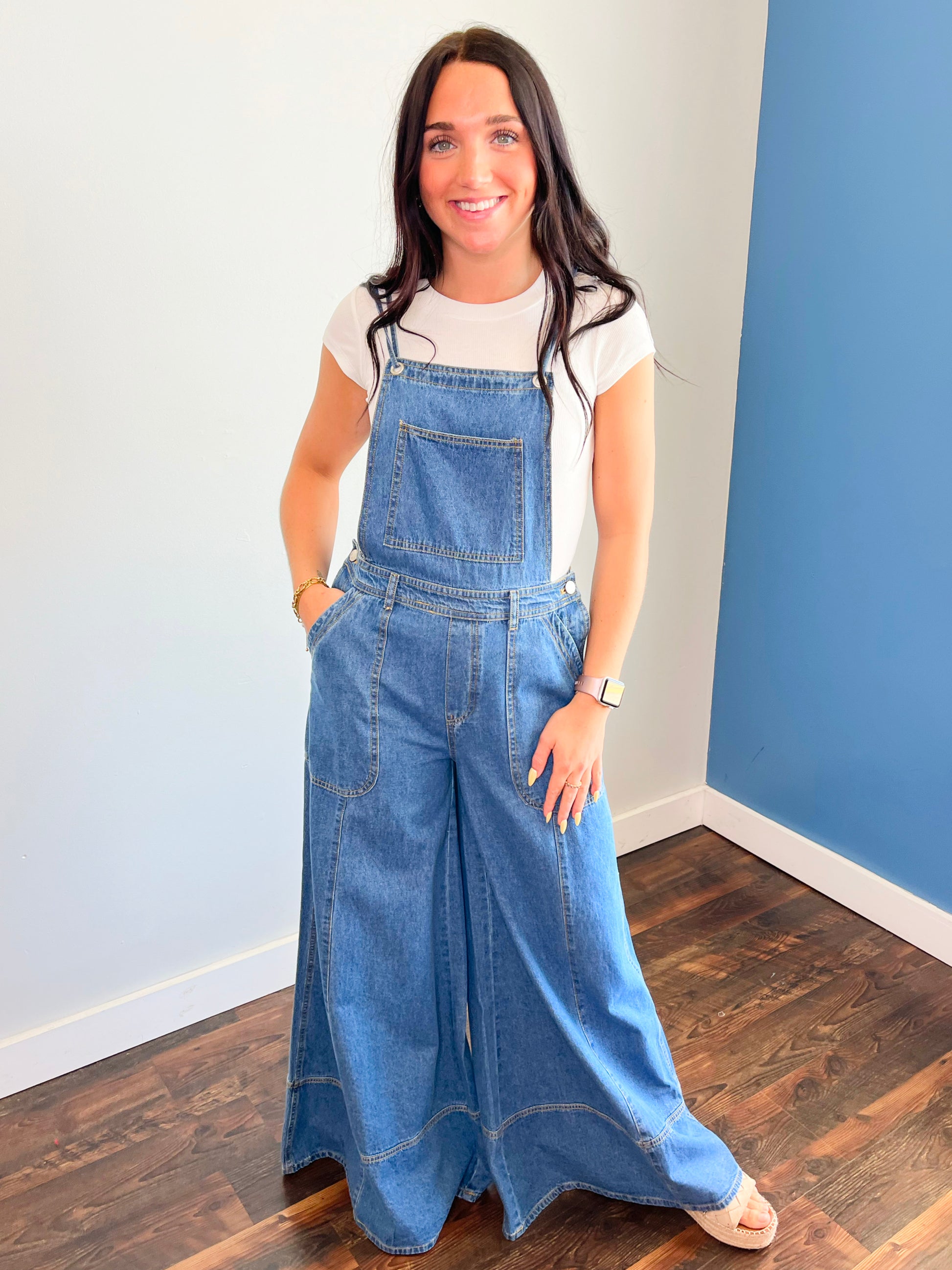 Get ready to turn heads with the Cora Wide Leg Denim Overall Jumpsuit! The trendy wide legs and adjustable straps make for a fun and playful look. Perfect for those who don't take themselves too seriously.