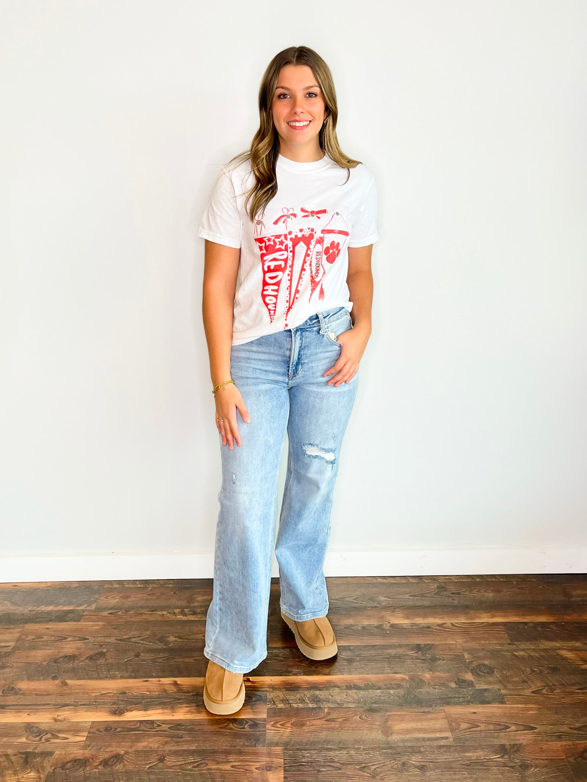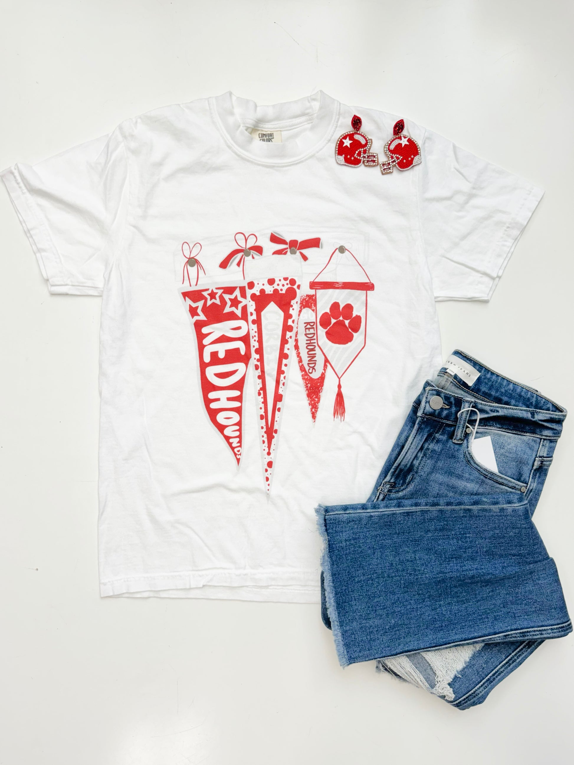 Unleash your inner Redhound with the Kentucky Banner Tee! Show off your school spirit and cheer on your team in style this football season. Get ready to stand out with this quirky and fun addition to your wardrobe.
