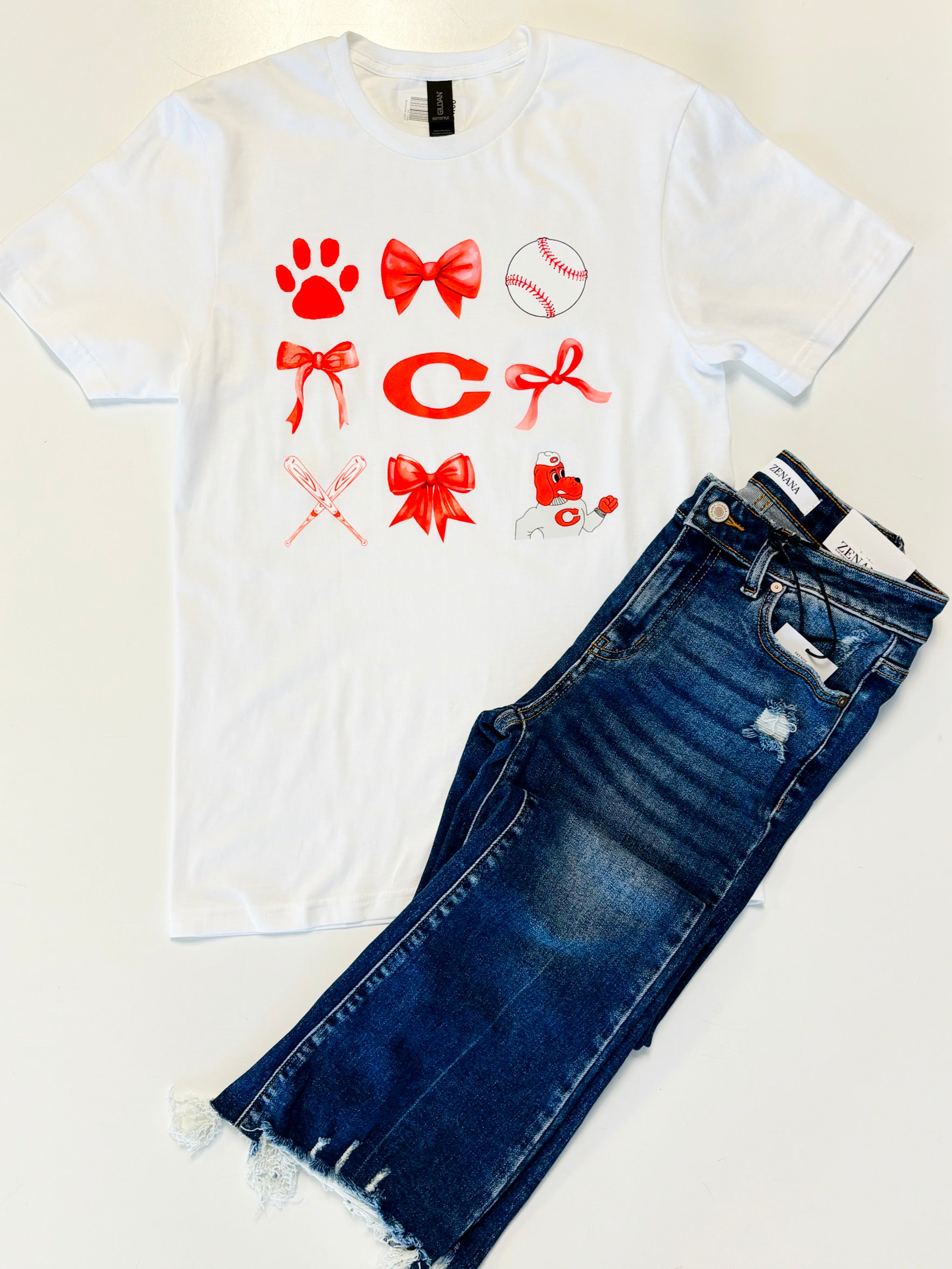 Get ready for game day with our Corbin Baseball & Bows Tee! Featuring a unique baseball ball tee design, this tee is perfect for any Redhound. Step up your game and show off your team spirit in style. (Go team!)