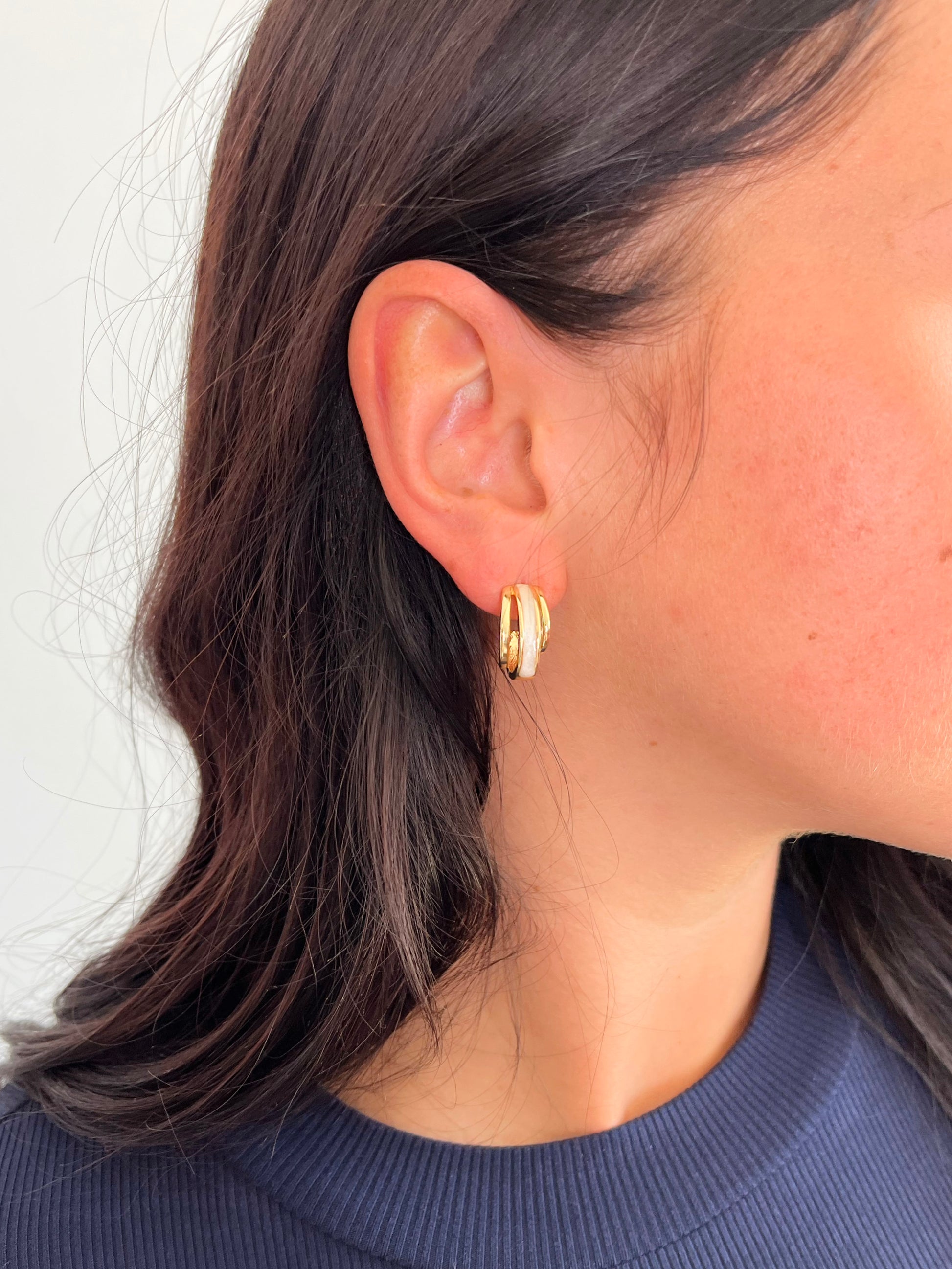 Halston Pearl Inlaid Layered Earrings
