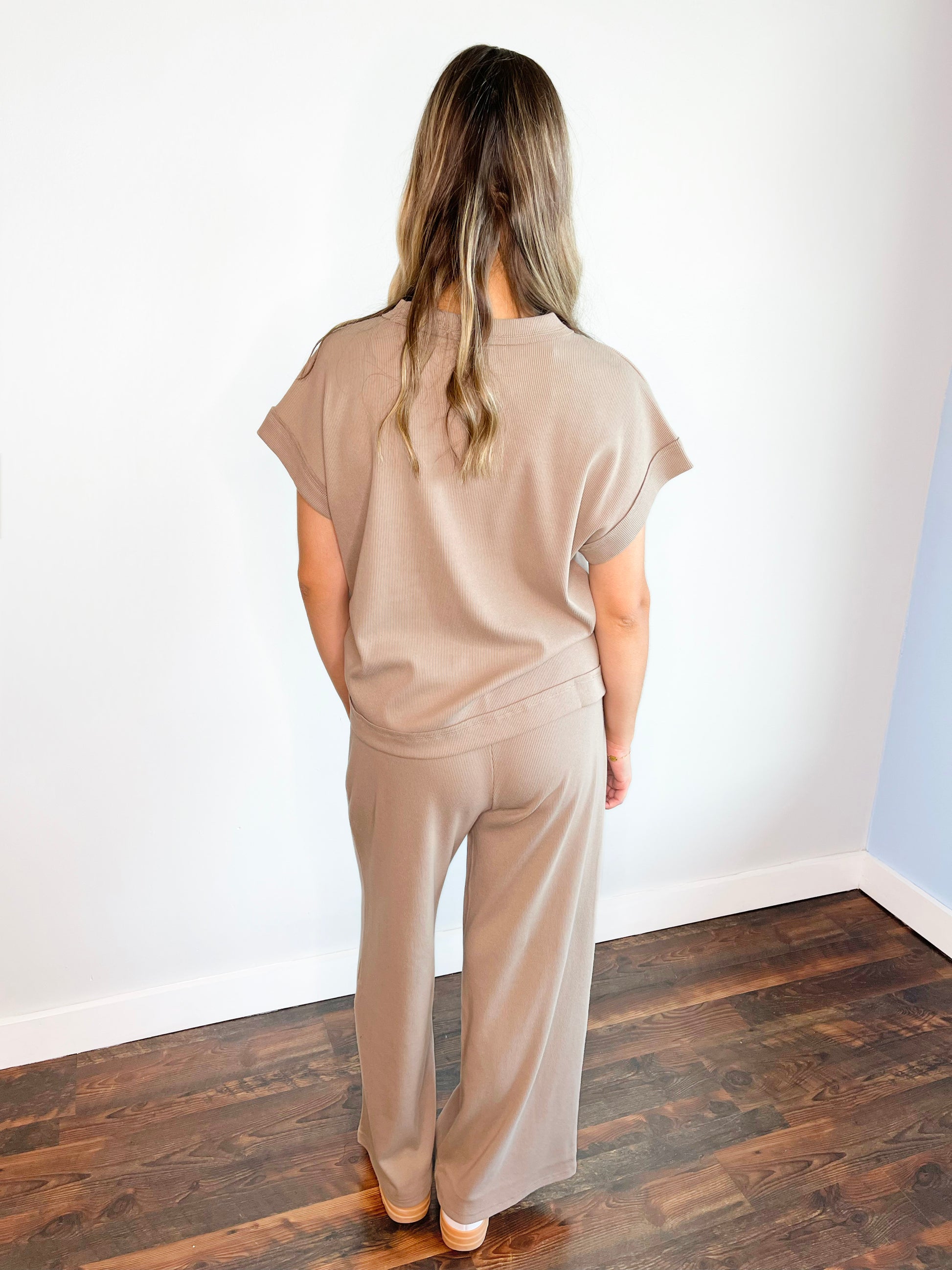 Cozy meets chic in this Hannah Ribbed Knit Set. Featuring a soft, luxurious feel, the top boasts a round neck, short sleeves, and trendy drop shoulders for an easygoing vibe. The high-rise bottoms include a drawstring waist and handy front pockets, perfect for on-the-go comfort. Finishing touches like banded neckline, cuffs, and hemline add style and shape to this effortlessly stylish set.