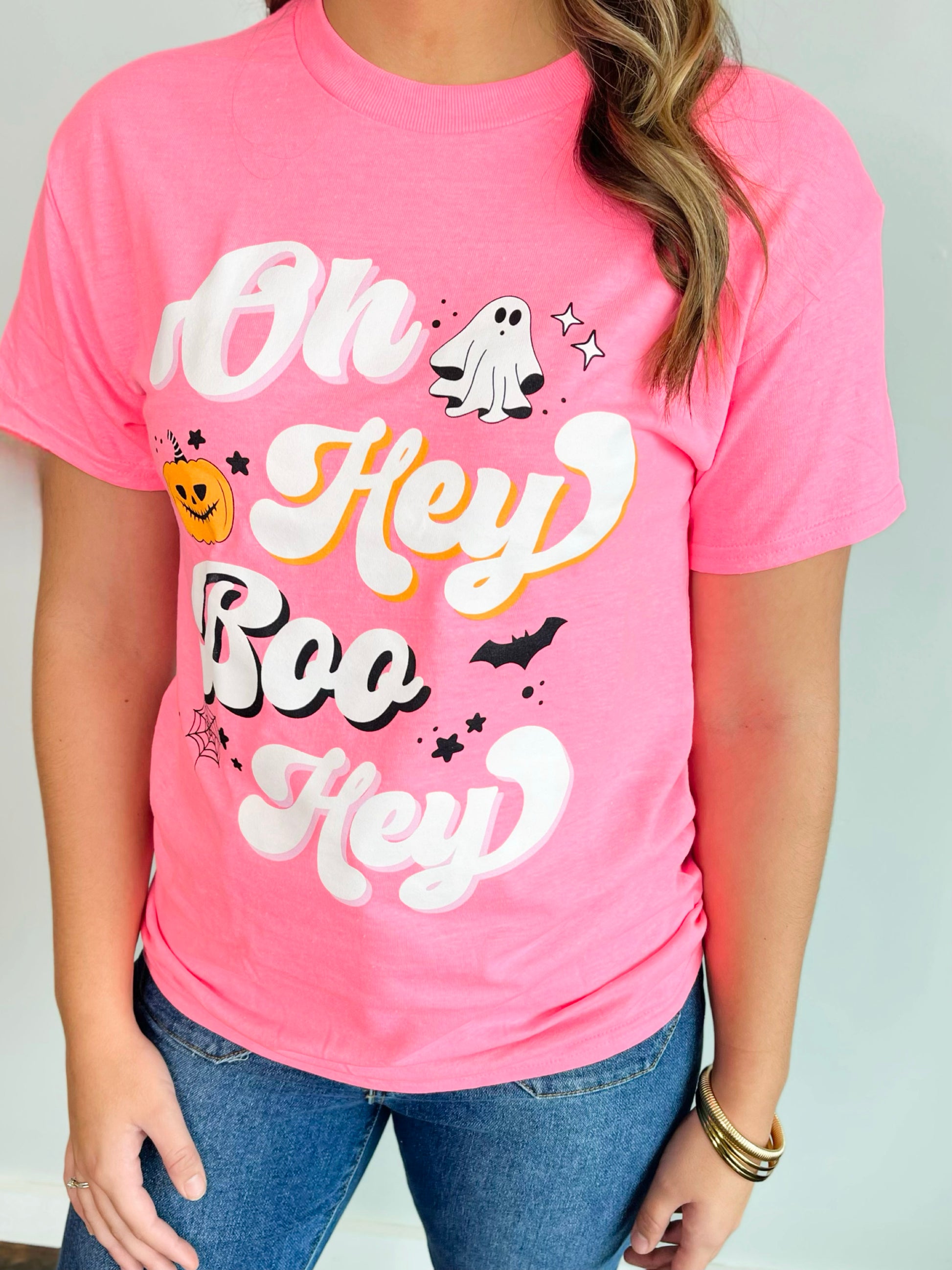 Introducing our Hey Boo Hey Tee - perfect for Halloween! This playful and quirky shirt features the phrase "hey boo hey" for a fun and unique look. Show off your Halloween spirit and sense of humor with this tee.