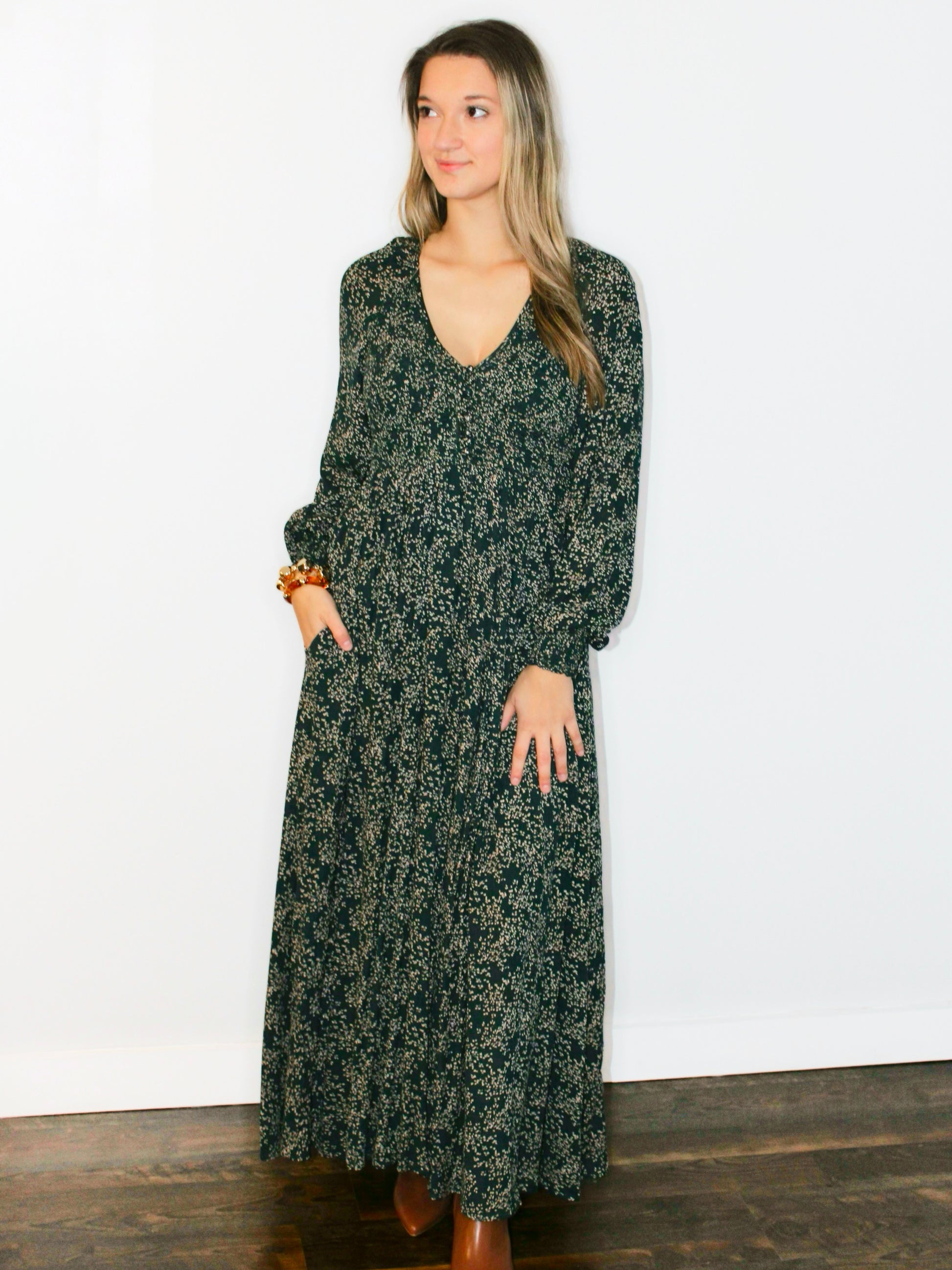 Step out in style with the Jorja Smocked Floral Midi Dress. Featuring a flattering smocked waist and back, this dress offers comfort and shape in all the right places. The soft floral rayon fabric pairs beautifully with playful raglan sleeves and elastic exaggerated cuffs, adding a fun twist. A V-neckline and functional cover buttons bring charming details, while side pockets keep essentials close. Fully lined for a smooth feel, this dress is perfect for dancing through your day with ease and flair.