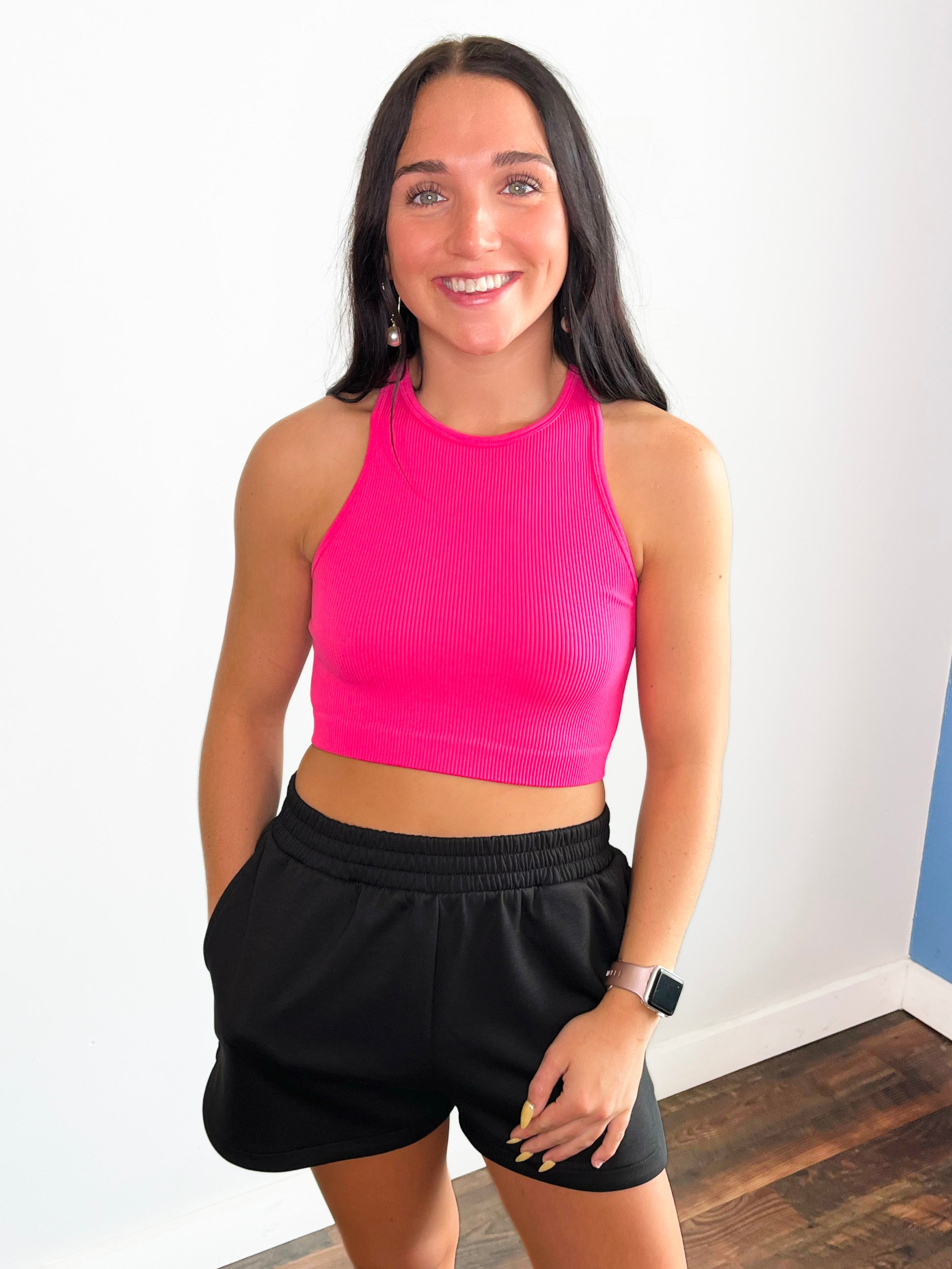 June Seamless Ribbed Cropped Tank Top | Fuchsia