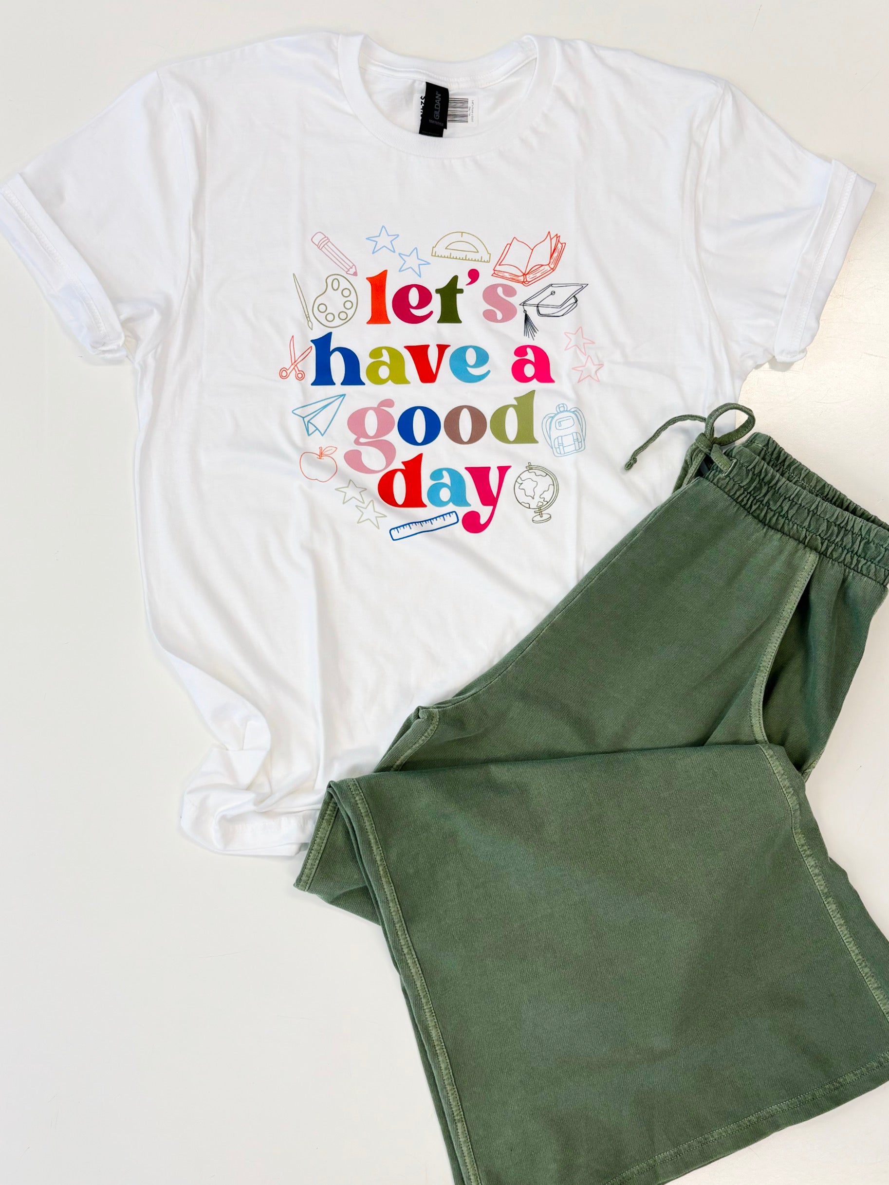 Brighten your classroom and your mood with the Let's Have a Good Day Tee, designed just for teachers who love to inspire. This playful tee pairs comfort with a positive message, making it the perfect go-to for those busy school days when a little extra cheer is needed. Soft fabric and a fun design help you start every lesson with a smile.