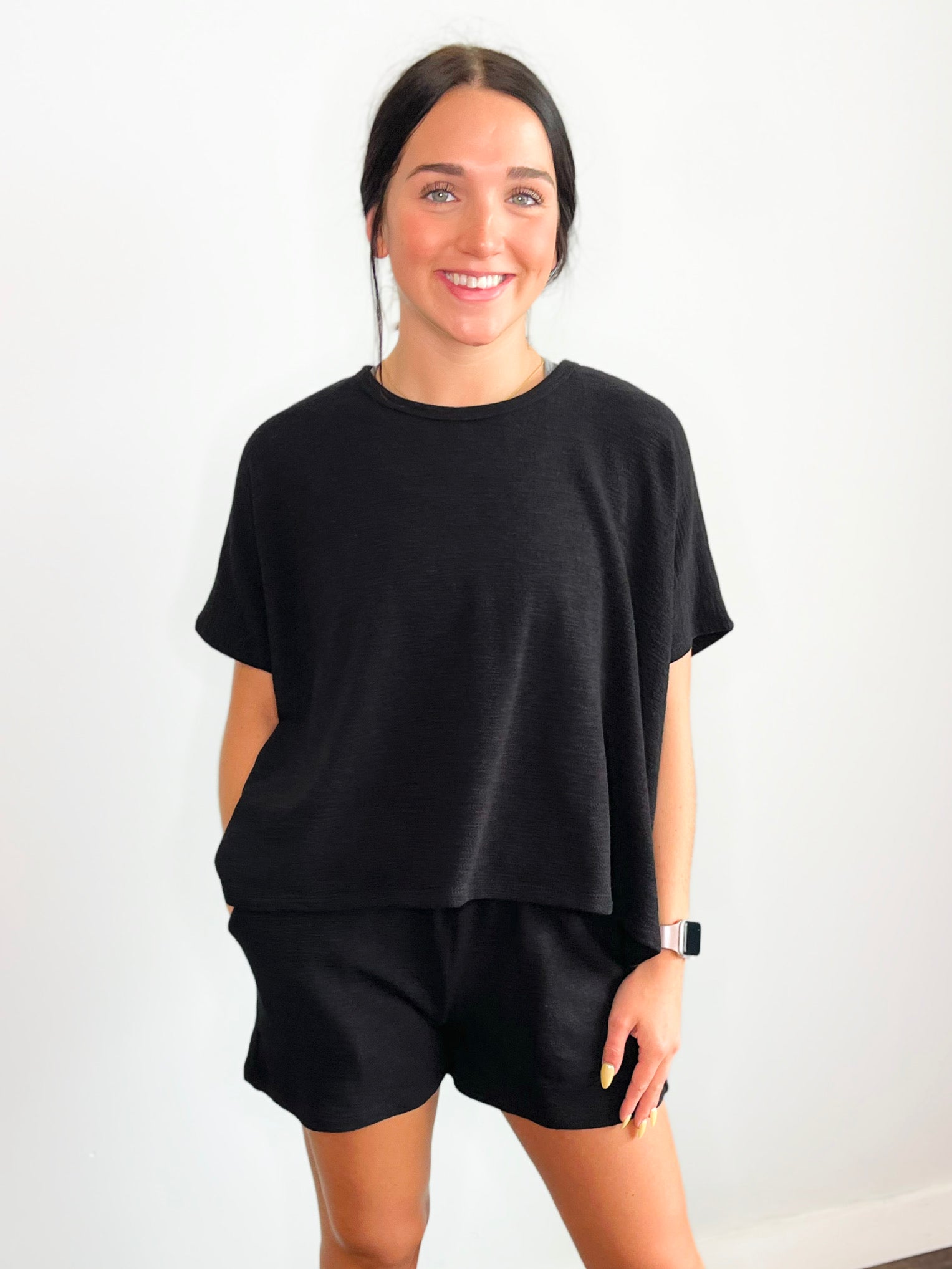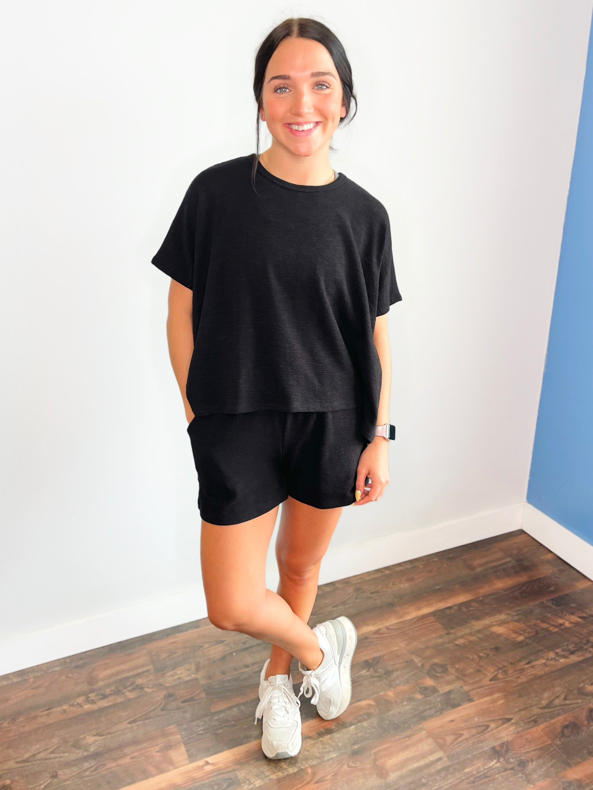 Lois Cotton Slub Short Set | Black