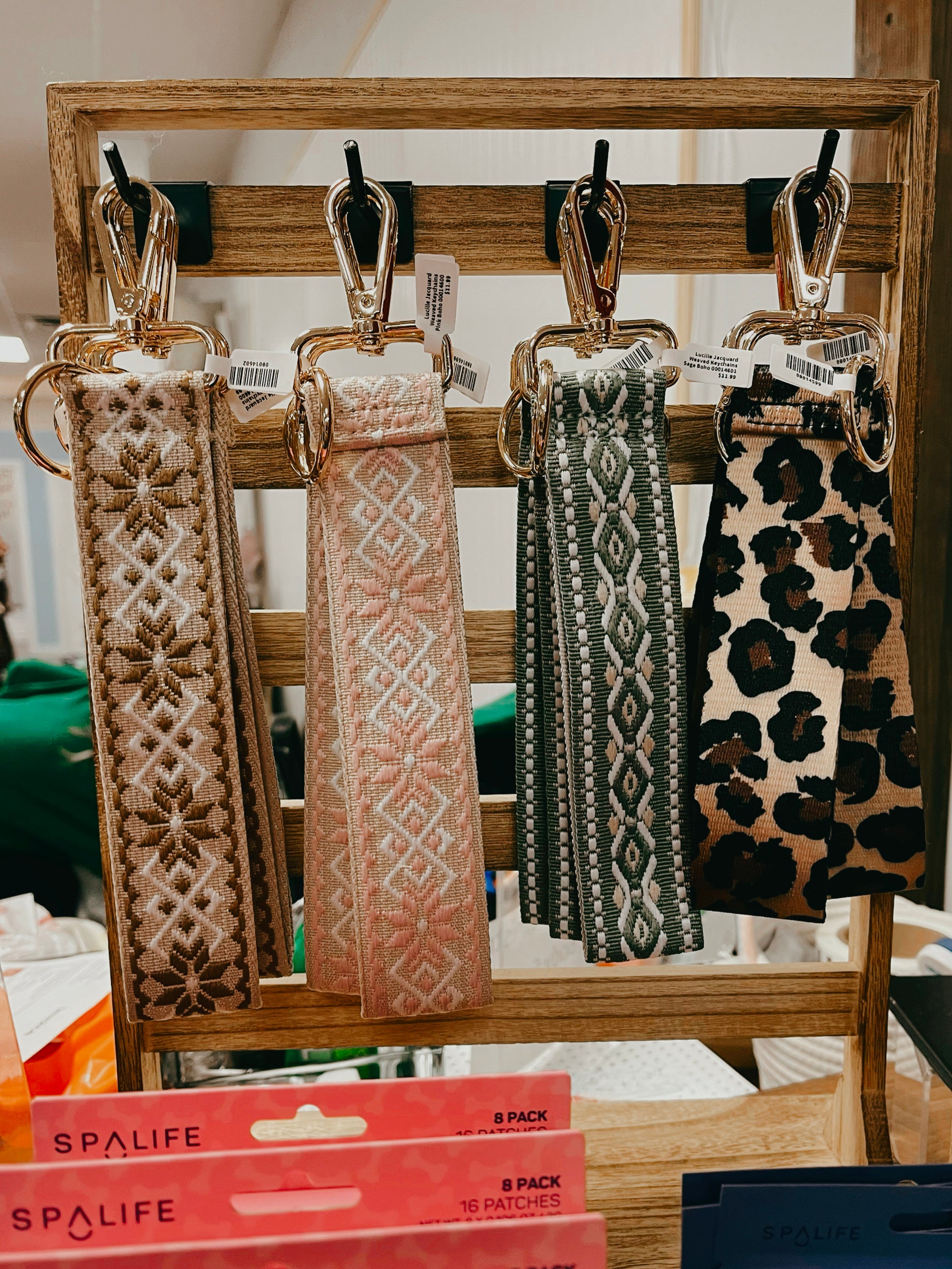 Never misplace your keys again with the Lucille Jacquard Weaved Keychain. Featuring an eye-catching jacquard weave pattern, this stylish accessory keeps your keys secure with dual clip keyrings and elegant gold hardware. Effortlessly attach it to your favorite bag, purse, or belt loop for instant access and peace of mind. The perfect blend of fashion and function—because losing your keys shouldn't be an option.