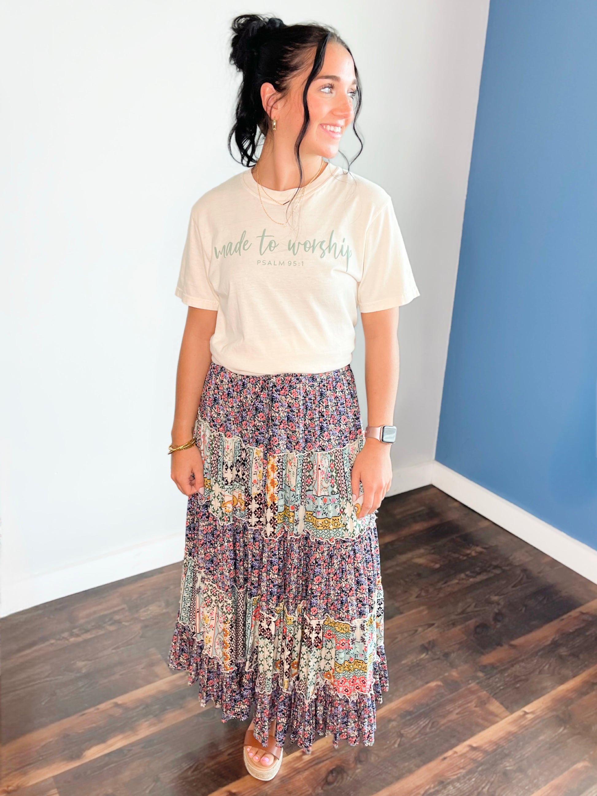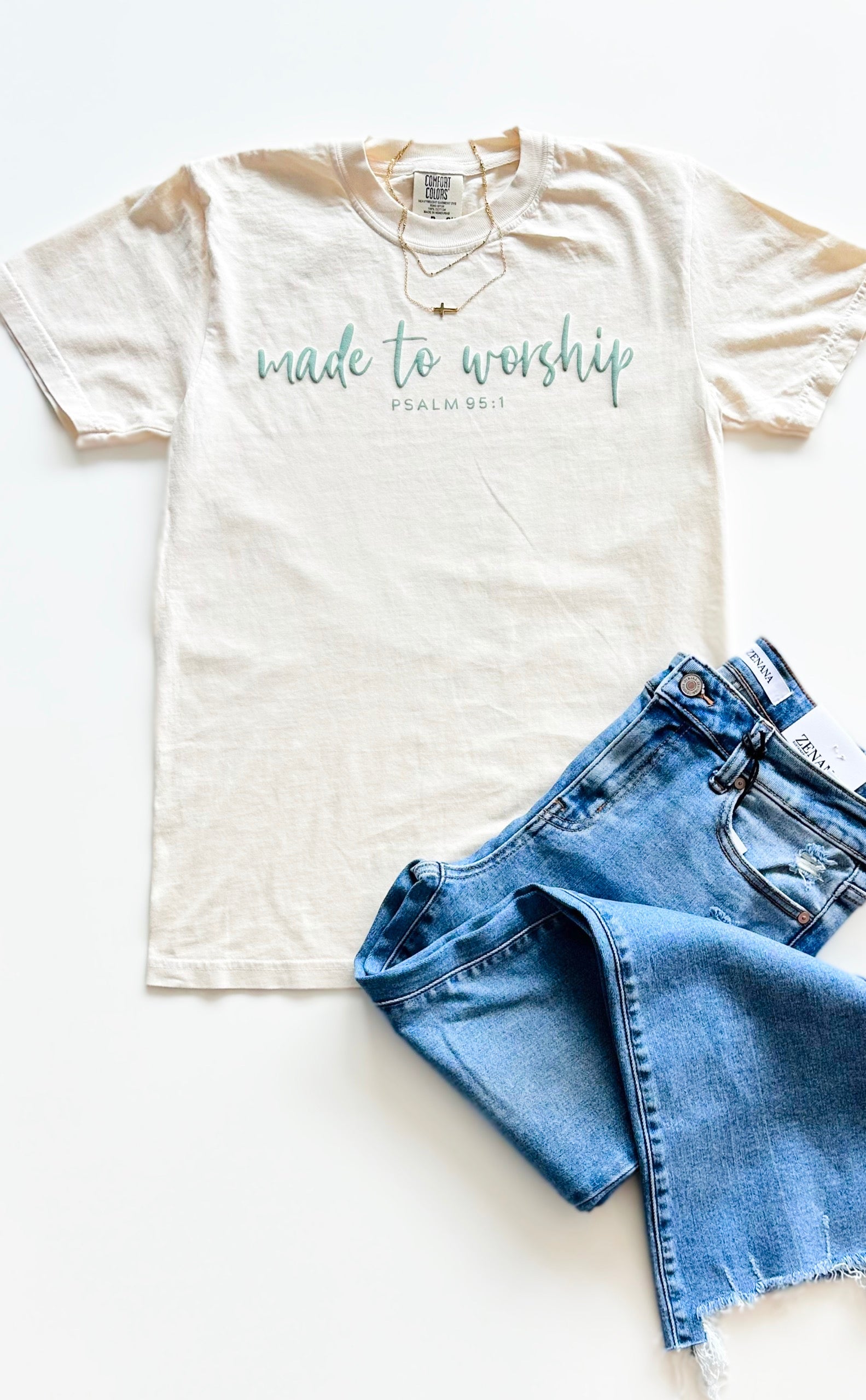 Celebrate your faith with a playful twist in the Made to Worship Tee. This comfortable, stylish shirt is perfect for expressing your devotion while keeping things light and fun. Whether you're at church, a casual outing, or just relaxing, this tee lets you wear your heart—and your joy—on your sleeve.
