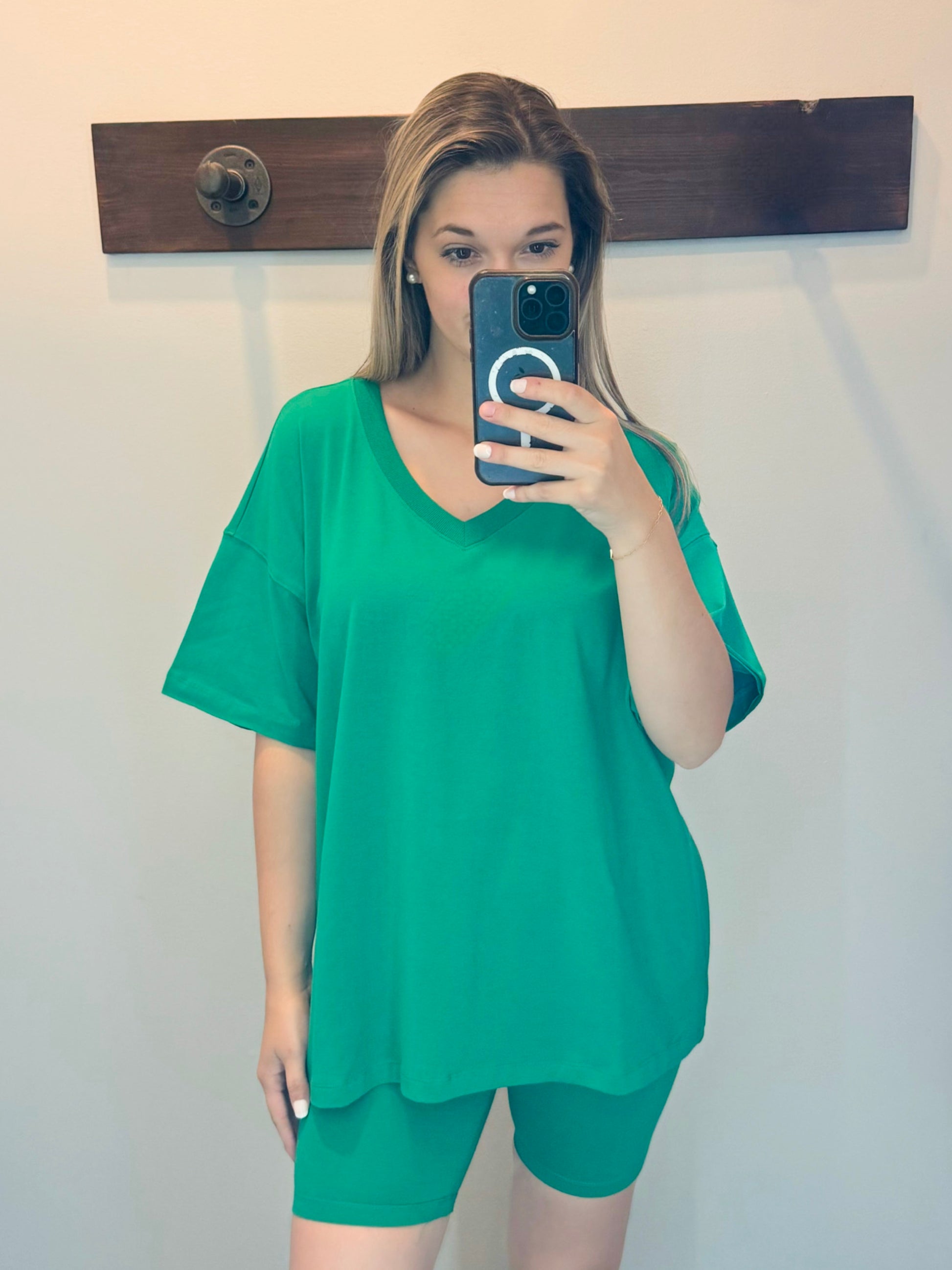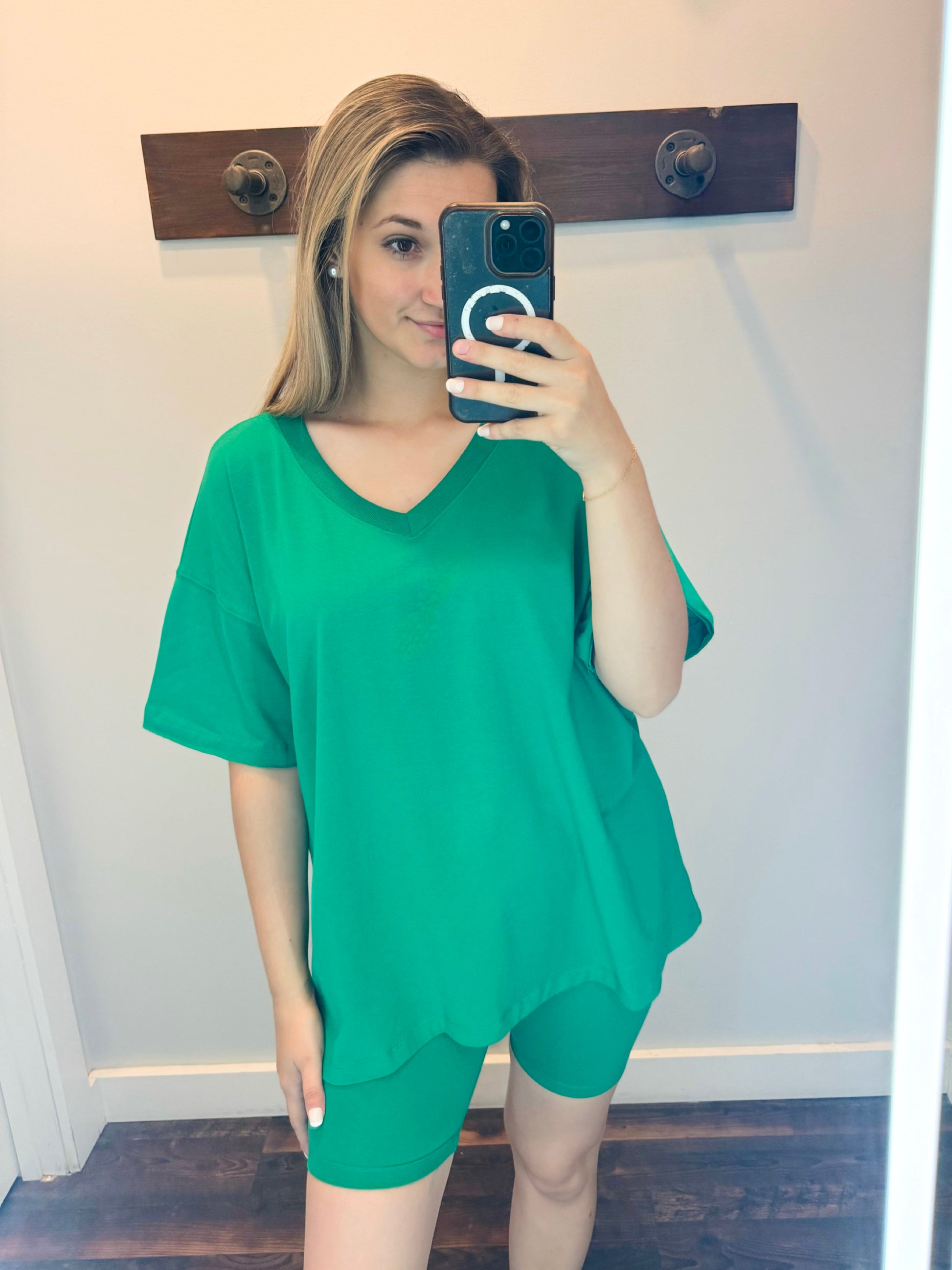 Mandy Cotton Short Sleeve Top and Biker Shorts Set | K Green