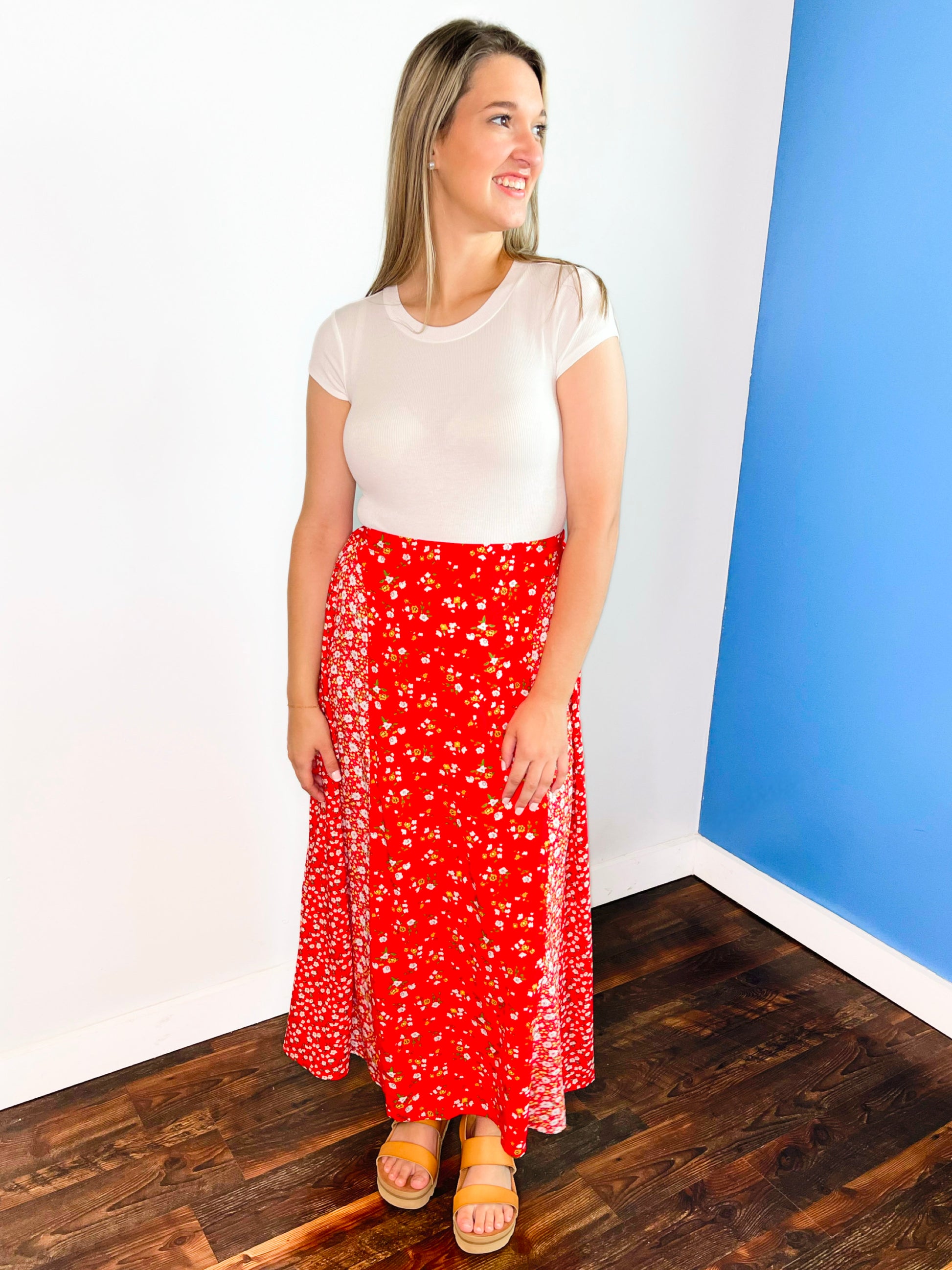 The Melanie Floral Maxi Skirt in Cobalt brings a playful twist to your wardrobe with its feminine silhouette and eye-catching contrasting floral patterns. Designed with an elasticated waistband, it promises comfort that lasts from brunch to garden party. Pair it with your favorite strappy sandals and get ready to turn heads with effortless charm.