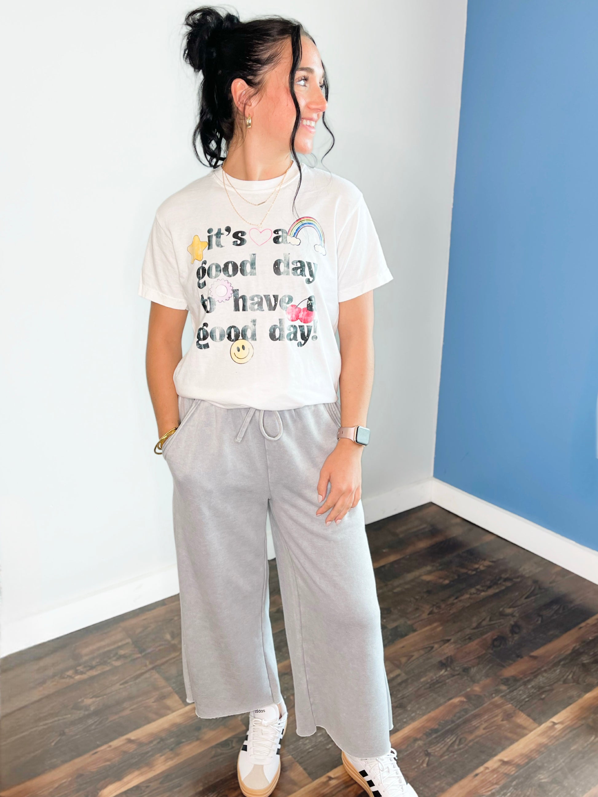 Get cozy and stylish with the Mila Acid Wash Fleece Pants. Featuring a comfy drawstring waist, handy pockets, and a trendy raw hem, these palazzo sweatpants blend relaxed vibes with a playful edge. Perfect for lounging or casual outings, they add a fun twist to your everyday look.