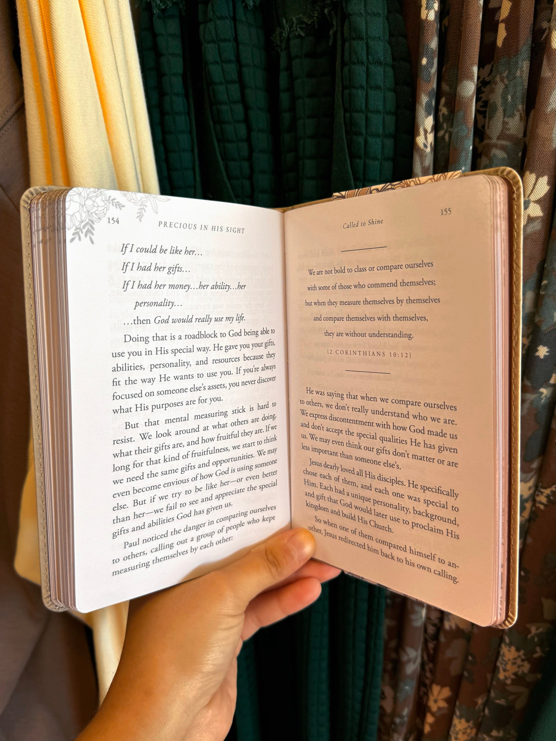In the Precious in His Sight Taupe Faux Leather Gift Book, Theresa Ingram tells the story of her own difficult childhood and a painful betrayal that left her feeling unlovable and unworthy. From the midst of this discouragement, God led her into a deeper understanding of His transforming love. By applying the truths of His Word to her life, she began to see herself as the precious daughter of the King. In this book, women will learn that they are made by God and loved by Him. They will discover their purpose to bring glory to God and find powerful and practical ways to take negative thinking captive to Christ.