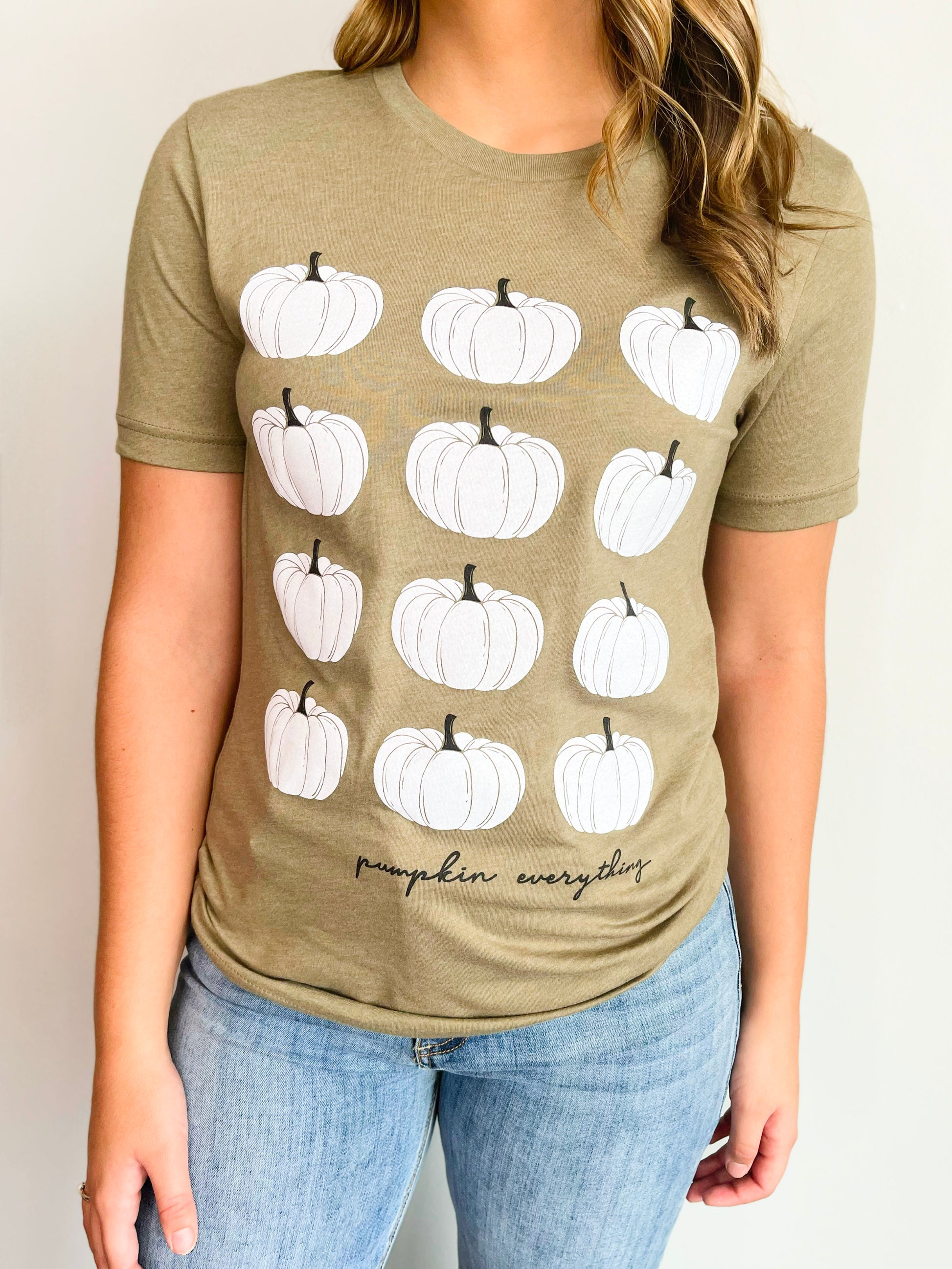 This year, take celebrating Fall to the next level with the Pumpkin Everything Tee. Get your pumpkin fix on this classic tee and show off your Autumn love in style! Who knows, maybe you'll even be the trendsetter this season. Be the first one to rock this pumpkin-packed piece!
