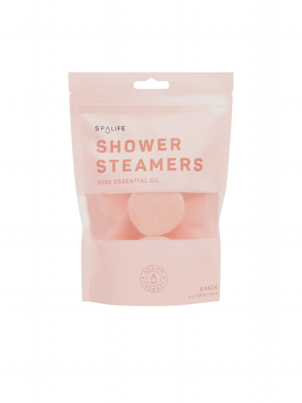 Aromatherapy shower steamers in rose essential oil with 6 steamers in each pack. The rose oil in the shower, provide respiratory comfort and rejuvenation, perfect for creating the ultimate spa-like setting at home.